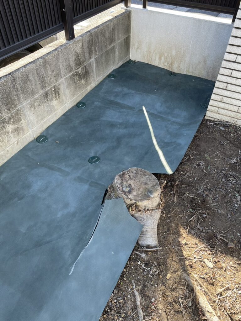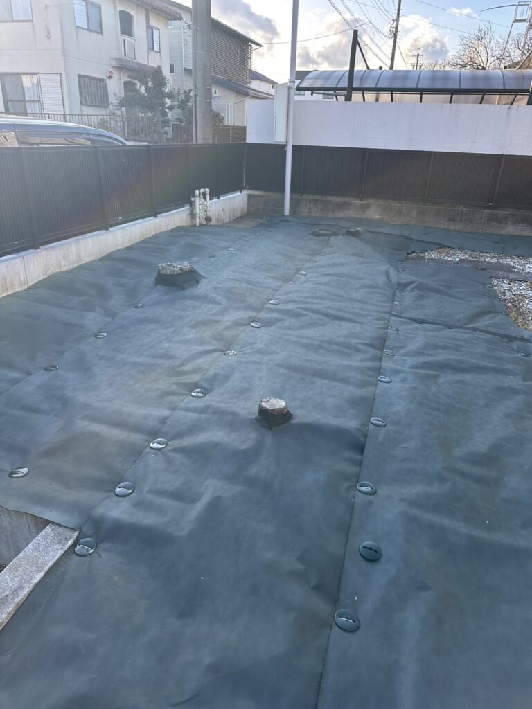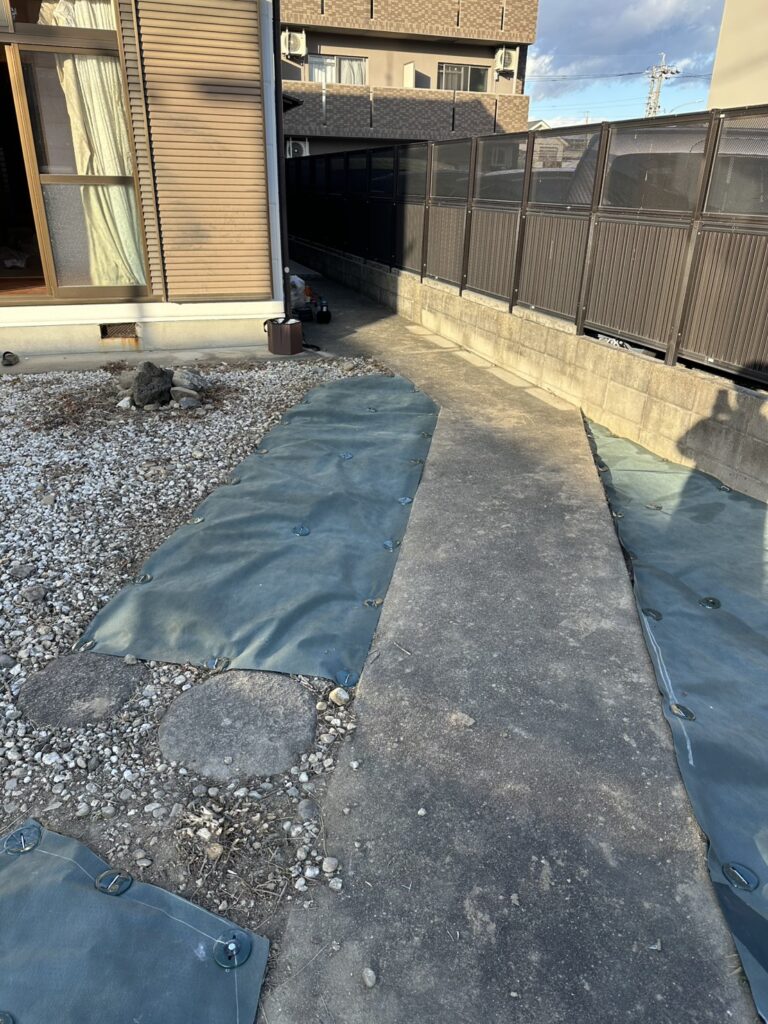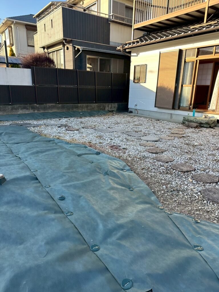 その後、「このままではまた草が生えてしまう」とのことで、長期管理を目的とした防草シート施工をご依頼いただきました。