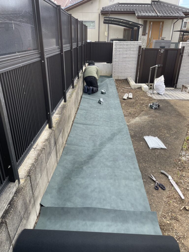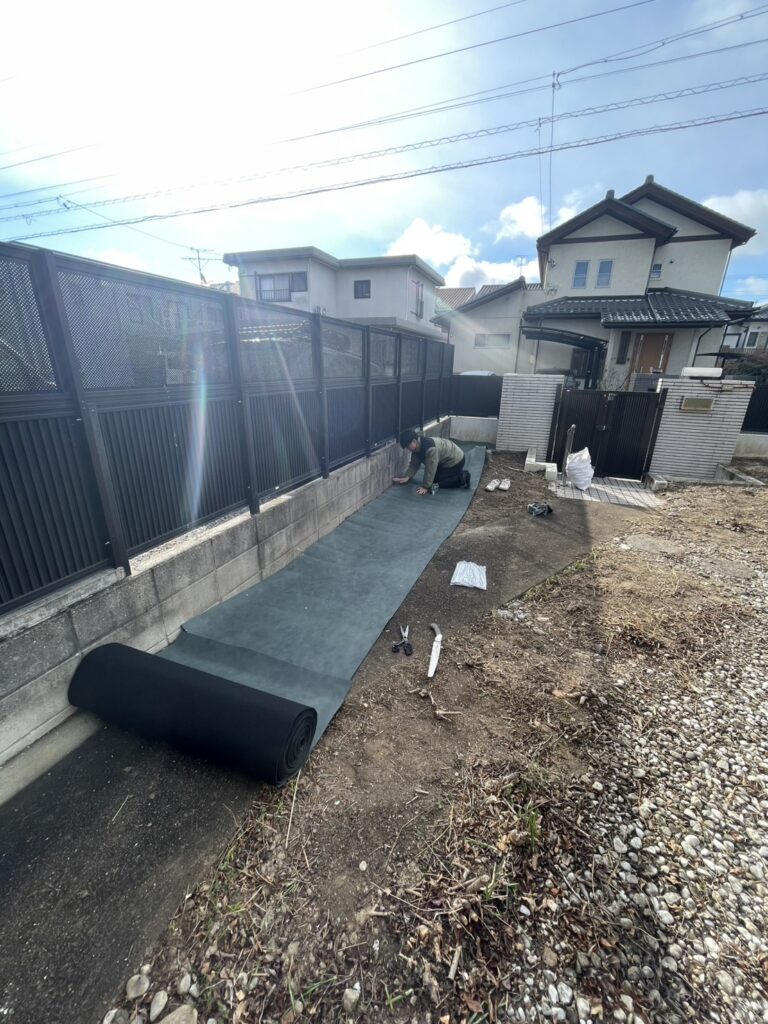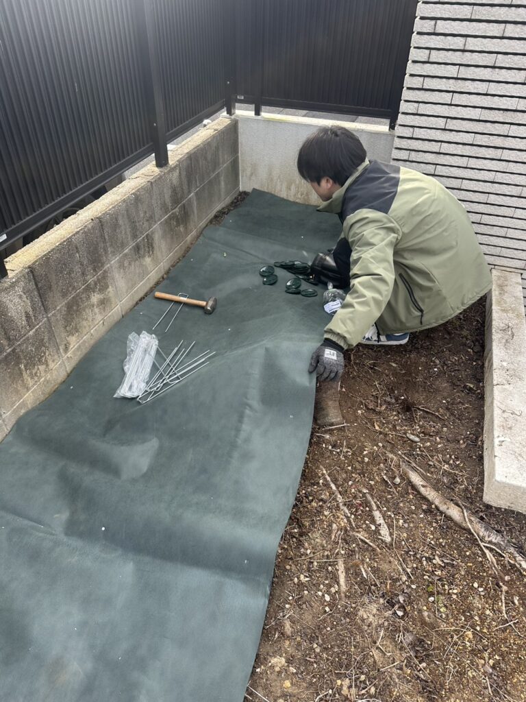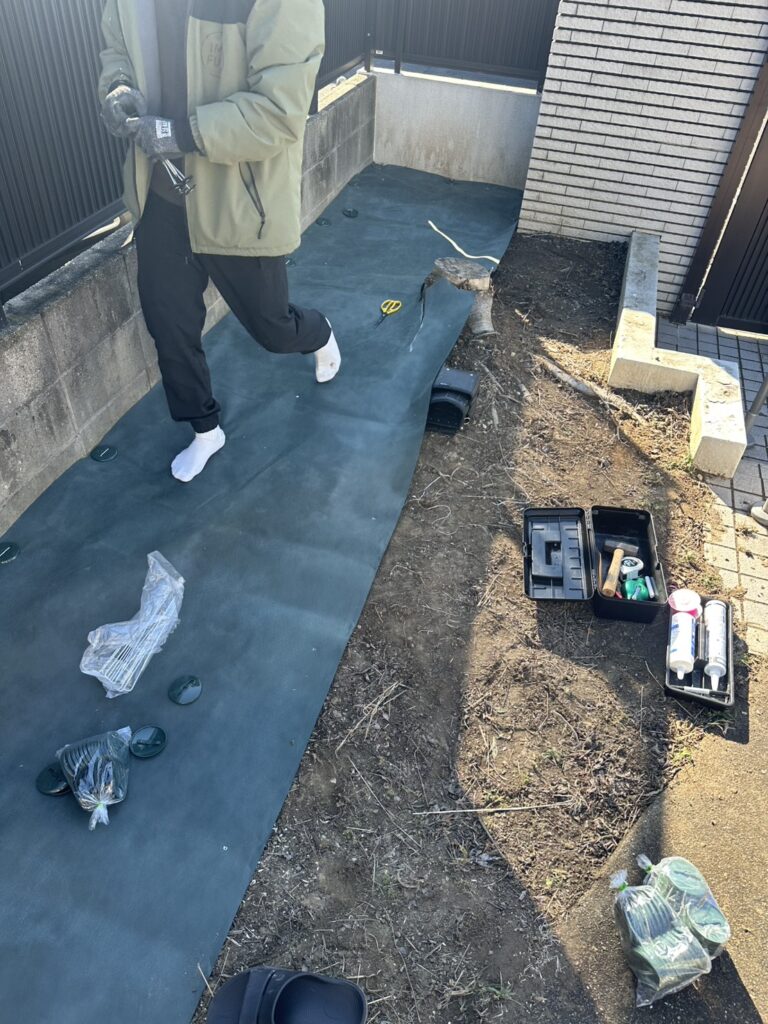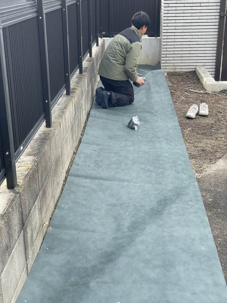 その後、「このままではまた草が生えてしまう」とのことで、長期管理を目的とした防草シート施工をご依頼いただきました。