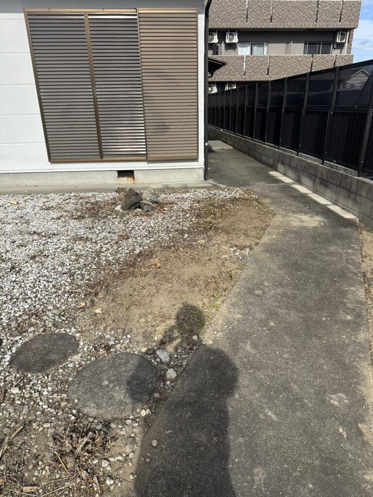 空き家は定期的な管理が難しいため、長期間雑草を抑制できる施工を行いました。
