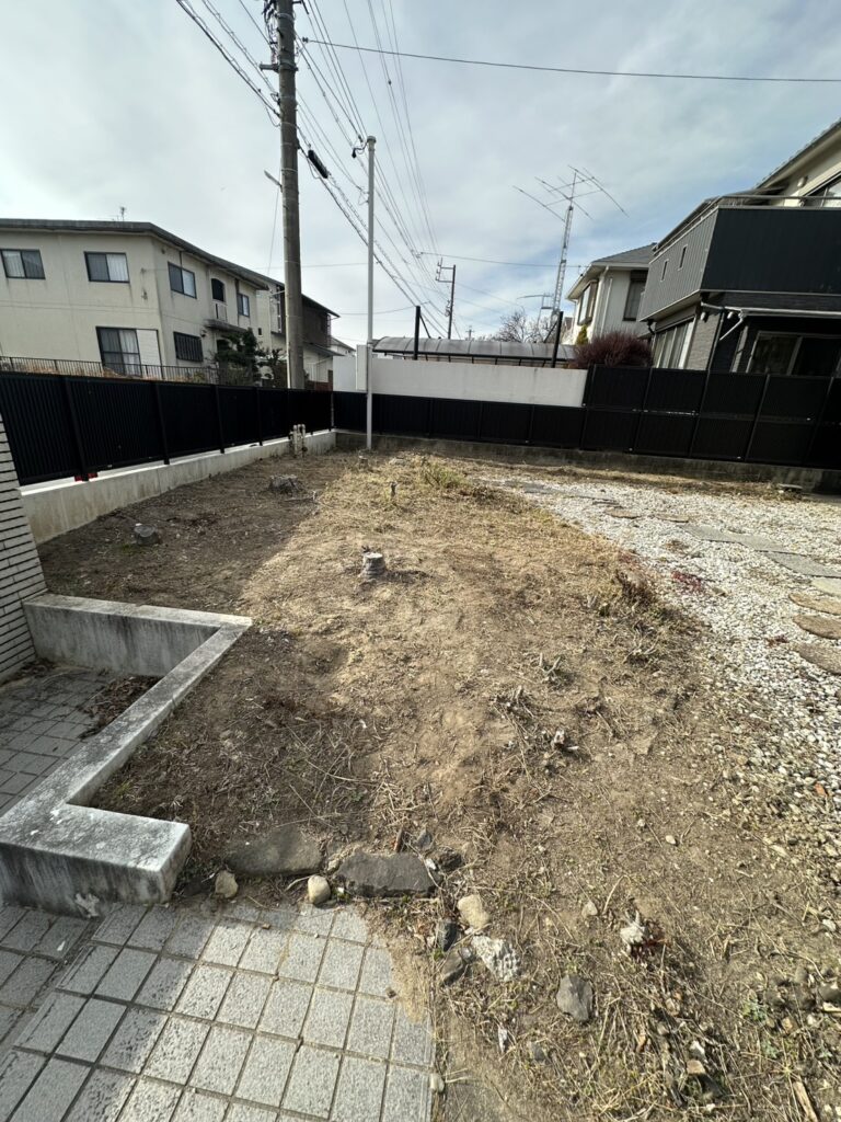 三重県津市にて、空き家となったご実家の庭じまいおよび防草シート施工を行いました。