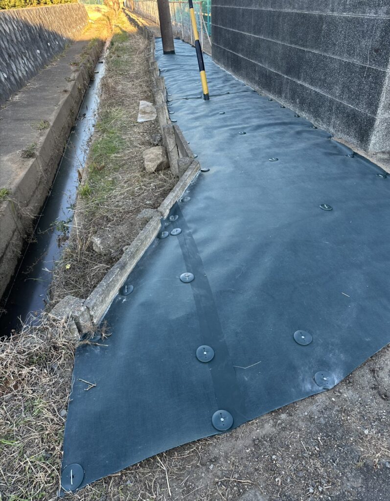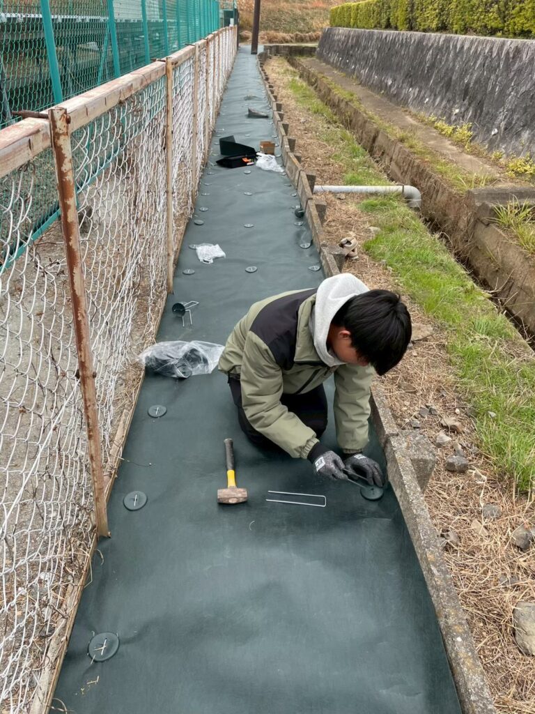 そのため、長期的な雑草対策として防草シート施工を行いました。