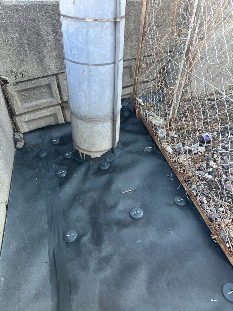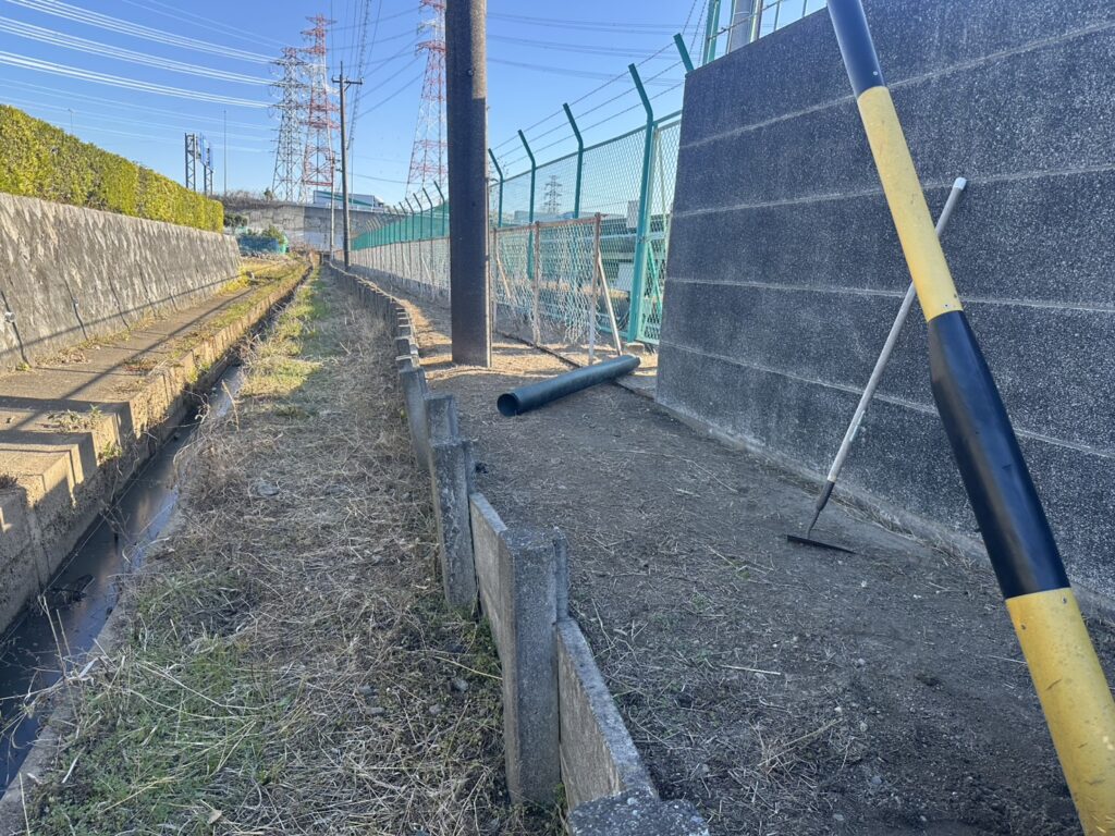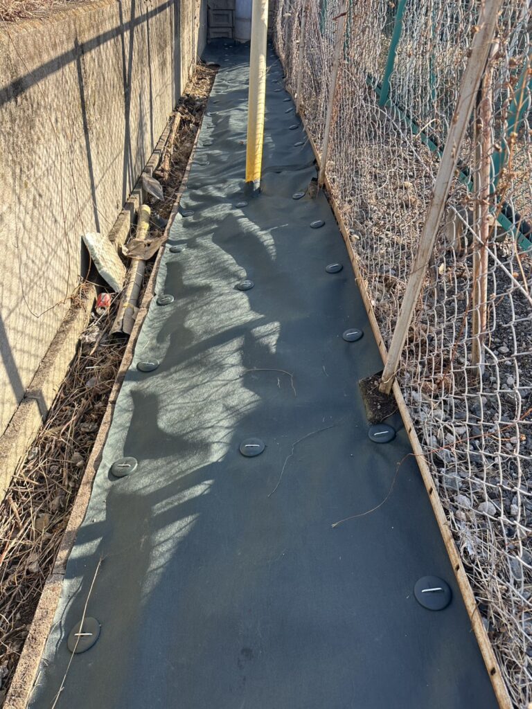今回は、長期間雑草を抑えるために高耐久の防草シート施工を行いました。