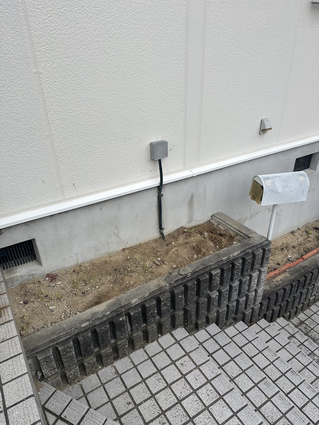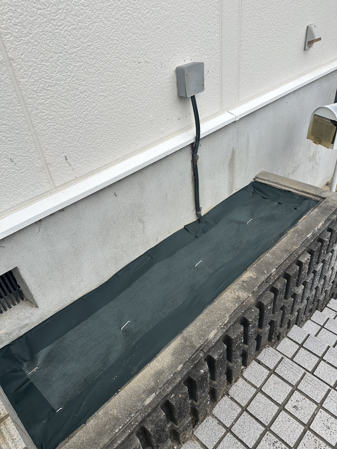 基礎部分や配管まわりも丁寧に施工し、隙間から草が生えにくい仕上がりにしています。