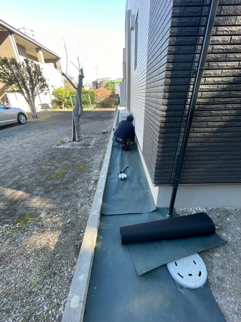 見えなくなる部分こそ手を抜かず、雑草が生えにくい下地づくりを重視しています。