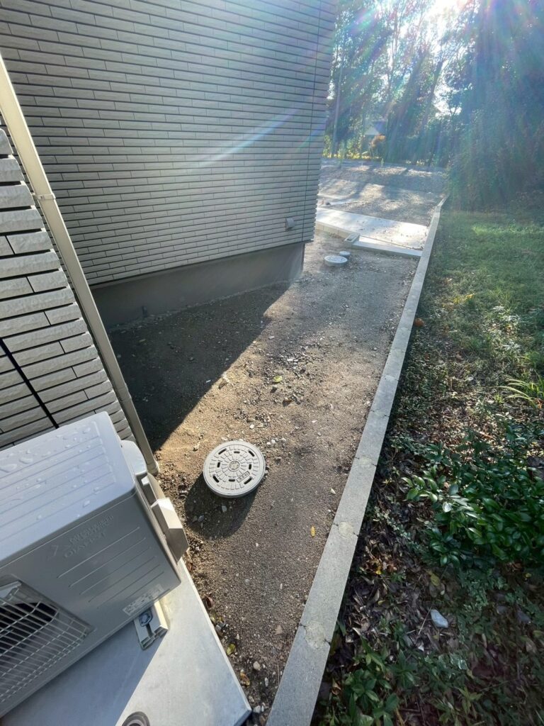 三重県津市のM様邸(新築住宅) にて、外構部分の雑草対策として「整地転圧/防草シート/砂利施工」 のご依頼をいただきました。
