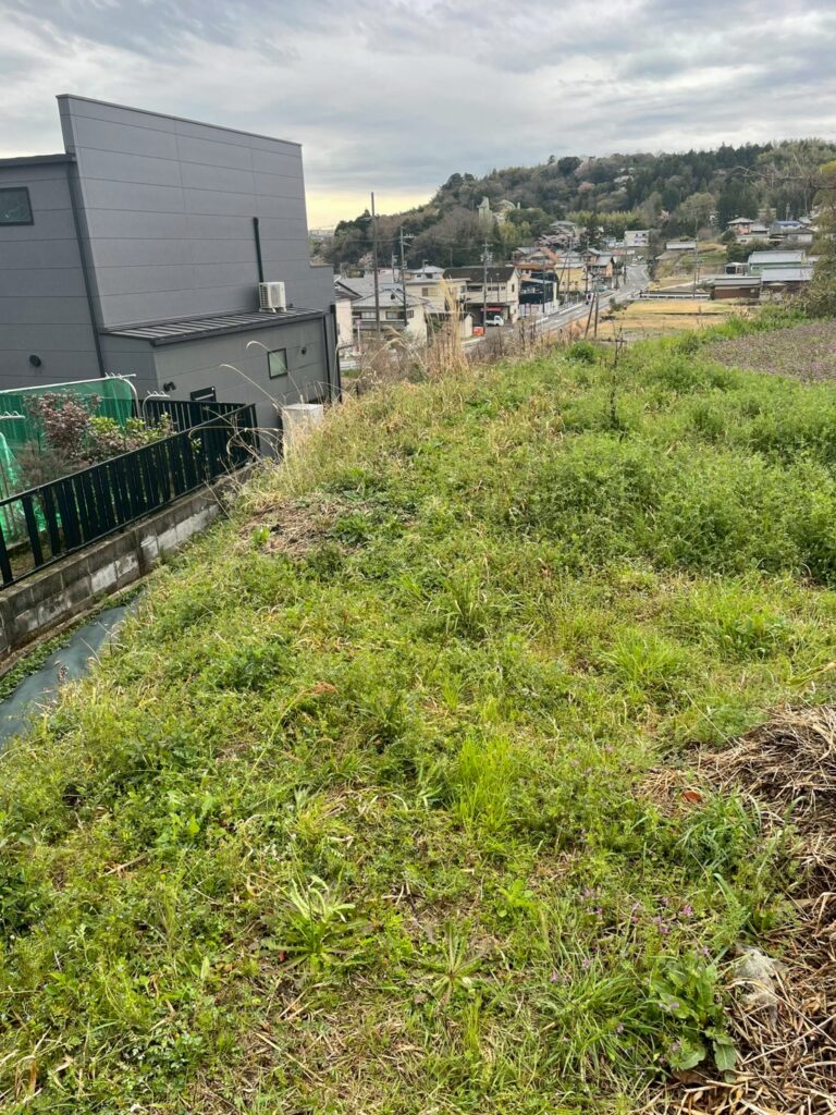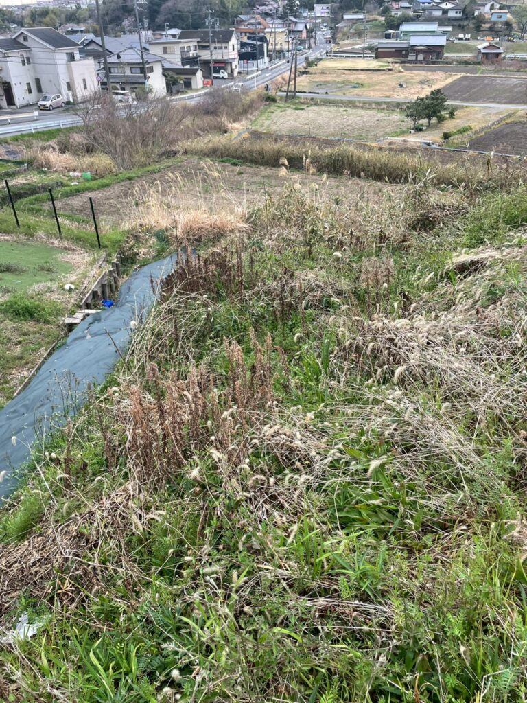 現場は傾斜のある土地で、草刈りが難しく、さらに竹が多く繁殖している状態でした。
