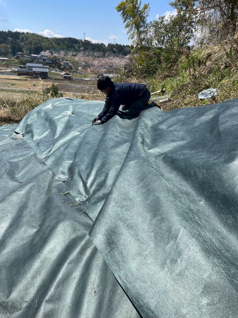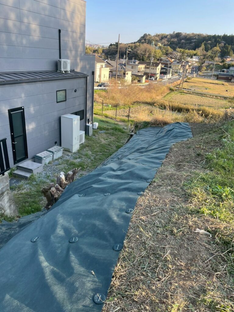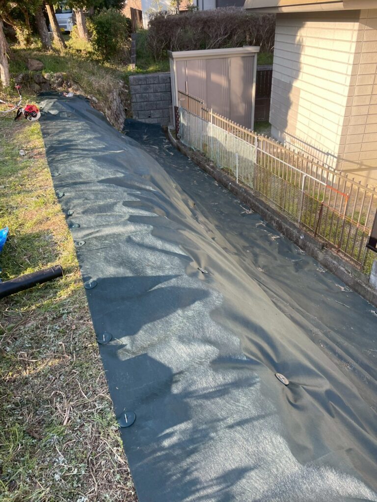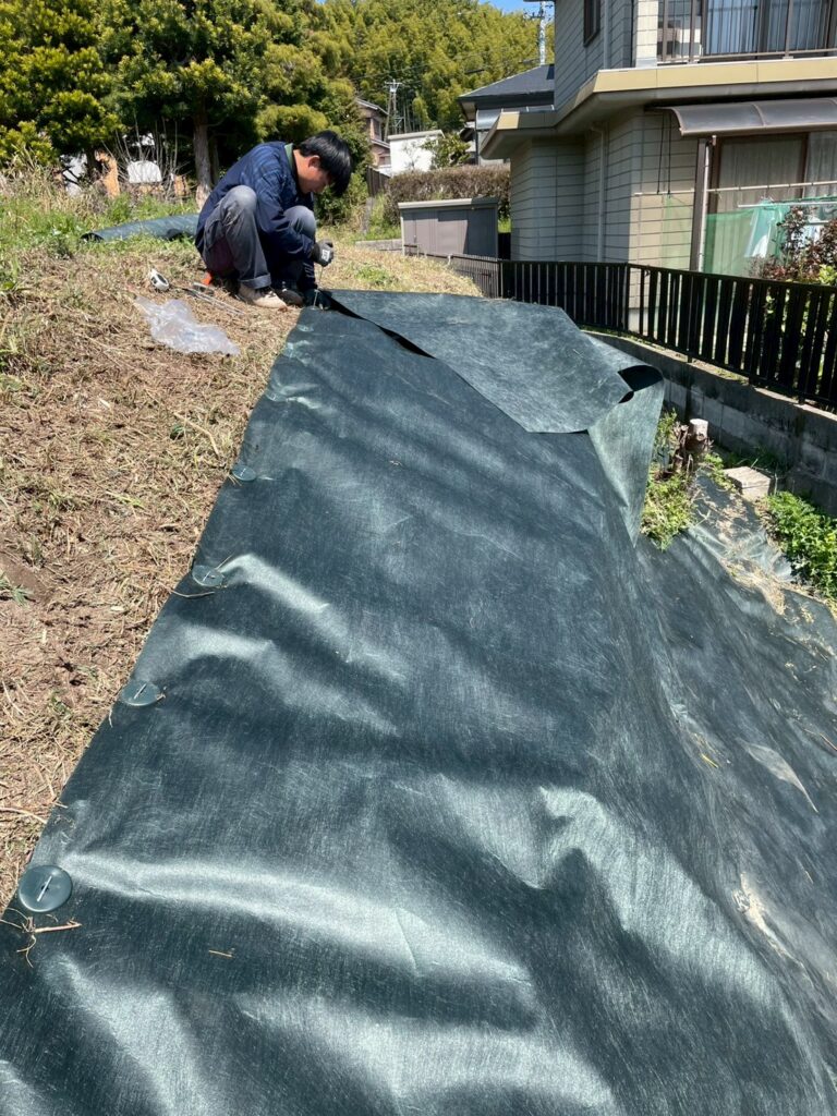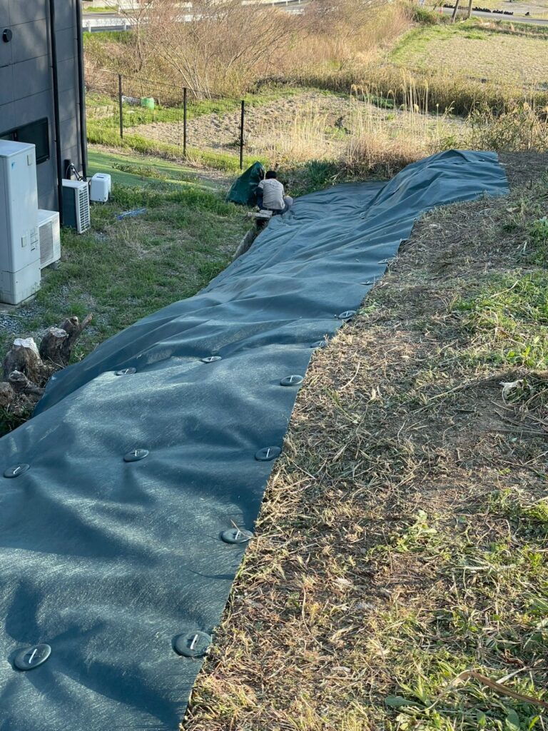 三重県四日市市にて、急斜面の雑草対策として防草シート施工をご依頼いただきました。