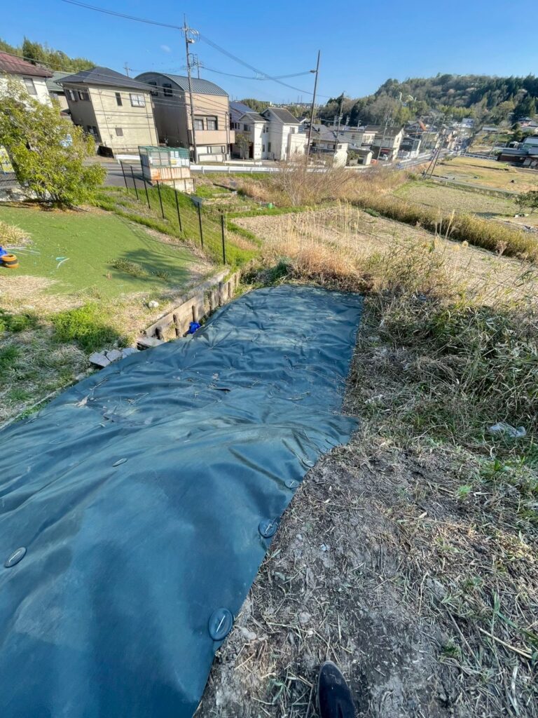【草刈り+防草シート】三重県四日市市で急斜面の雑草対策を行いました!
